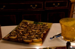 this one. But power was restored just six days prior leaving me almost no time to plan for the party and yet determined to make it happen. With the help of others I managed and the party was a great success and a fun time was had by all. I typically serve finger food to make it easier for everyone to walk around and some items on the menu this year were Batata Wada, Shrimp with tamarind & chipotle sauce, Crostini w/ goat cheese & wild mushrooms, Paneer Methi Tikki, Warm Dates w/ Prosciutto, a smoked salmon platter, profiteroles and much much more. With the help of family & friends and few items ordered from a restaurant to complement mine, we had a pretty nice spread if I do say so myself. All of course washed down with wine, rum, vodka, scotch and other beverages of choice.