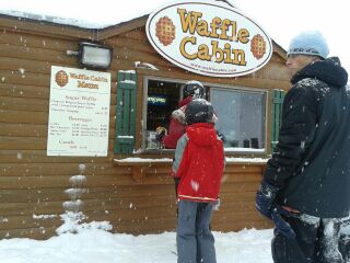 My son & I spent the days between Christmas and New Year skiing in Vermont. We were rewarded with three glorious days of fresh powder and took advantage of every bit of it. One of my son’s favorite things to do and is a requirement after a hard day on the slopes is a stop at the Waffle Cabin. These fluffy sweet concoctions are not the best in the world but oh do they taste awesome at 4pm as the lifts are closing and all you want to do is hit the hot tub that awaits across the bridge.