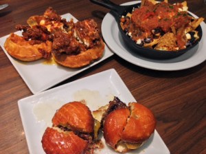 On our last day, my son was tired of noodles. I suggested going back to Luc Luc for the Pho but he wouldn’t have it. So we decided to walk toward Pioneer Square to a restaurant I had read about to check out their happy hour. What interested me most about this place were the donut burger sliders on their menu. The name of the restaurant is The Original on 6th Street. It is an interesting place with a diner style décor located on the street level of an office building. It is bright and friendly and when you walk in, you get a sort of nostalgic feeling. We were seated in a booth and ordered the Donut Burger sliders, Chicken & Waffle sliders and some Black Bean Nachos. To put it in text language…..OMG!!! Both the sliders were absolutely delicious. Generally I find that burger sliders tend to be overcooked meatballs, but these were cooked a perfect medium and full of flavor. The bun is made from buttermilk donuts, the burger is topped with some Tillamook cheddar and then it’s all coated in a sticky, sweet glaze that has a hint of spice to it. They were so good, my son wanted to place a second order. The chicken & waffle sliders were equally good. The chicken was moist and tender and the waffles nice and fluffy. There was a honey-dijon drizzle on top which was flavorful though my son & I added some hot sauce to it for an added kick. Black bean nachos were also quite good. Having broken our noodle theme, we walked back in the rain by way of the Microsoft store where my son enjoyed playing some video games for a while before heading back to the hotel.