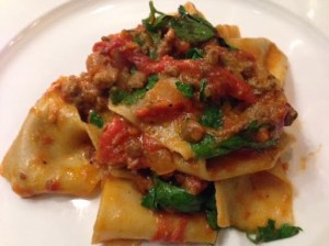 Having tried two Asian style noodles thus far, for my business dinner that evening I offered to make reservations so that I could keep with the theme and decided Italian noodles were likely the safest option. The restaurant I chose is Pazzo on Washington Street. I have eaten at Pazzo before and also been there for cocktails, but had never eaten the pasta. It’s an Italian restaurant and they make some of their own pastas. We ordered the Pappardelle with Bolognese sauce to share since our bowls of Ramen earlier in the day had not yet completely digested. The pasta was very good and perfectly cooked. The Bolognese also was rich and flavorful. We ate it all despite our already full stomachs.
