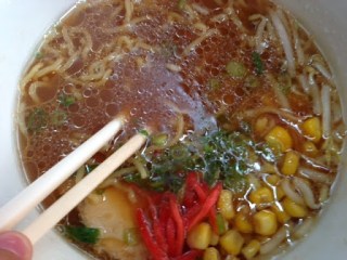 The next day I walked back to the hotel for lunch and we decided that we would try the House of Ramen just up the block on Columbia Street. It’s a tiny hole in the wall that I have passed many times on my trips here but never actually ventured in. Turns out this was our favorite noodle joint of all the ones we tried. My son had the make your own bowl which he ordered with the Shoyu soup base, normal size noodles, and the Cha Siu Pork. Also added to each bowl are bok choy, bean sprouts, scallions, corn & ginger. I ordered the Kyoto bowl which also has the Shoyu soup base, scallions, mushrooms, jalapenos, kikurage and ginger. Once you place your order and find a seat, the Ramen is brought to you in about 5 minutes. We chose counter seats along the window so we could watch the passersby and examined a variety of hot sauces on a tray while we waited for our food. Both our bowls of ramen were delicious. We added sriracha sauce to kick it up a bit and just ate in silence till the bowls were empty. One thing I was thankful for as I enjoyed my ramen was my local Chinese friends who have over the past few years gotten me fairly comfortable eating with chopsticks. Even my little guy did pretty well with them.