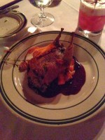 The restaurant that our host had chosen for dinner was the Deer Mountain Inn and this evening was one of the highlights of the weekend for me. We drove off the main road in Tannersville up the mountain past old stone walls, beautiful houses and a fascinating old stone church. The Inn itself is quite an interesting building with a bright red door to welcome its visitors. We were greeted promptly and shown to our table but opted to sit at the bar for a drink before beginning our meal. The bartender, an interesting woman named Cidra, had a large personality and certainly knew how to draw in a crowd. She didn’t just mix and pour the standard drinks but instead began to concoct all kinds of strange cocktails for each of us. Mine was called the The Burlesque Show made with strawberries, bitters, egg whites and gin. It was quite delicious.