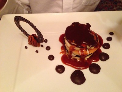 • Southern Butter Pecan Ice Cream Sandwich with Bittersweet Chocolate and Hot Caramel Sauce