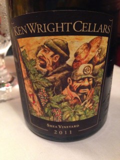 Prior to our meal we were served a tray of Amuse Bouche which included Compressed Watermelon with Goat Cheese, Bloody Mary Jelly Bean and “Chips and Dip” in a molecular gastronomical sort of way.  With my meal I chose to order a half bottle of the 2011 Ken Wright Shea Vineyard Pinot Noir.  It was a delicious wine that was complex and earthy with great balance.  It didn’t work with all of my courses but I just drank water with those.  We ate part of our meal by iPhone light which made for an interesting adventure which we will not soon forget.  Many of the photos I’ve shown were also taken under the light of my son’s phone making for some pretty good shots.