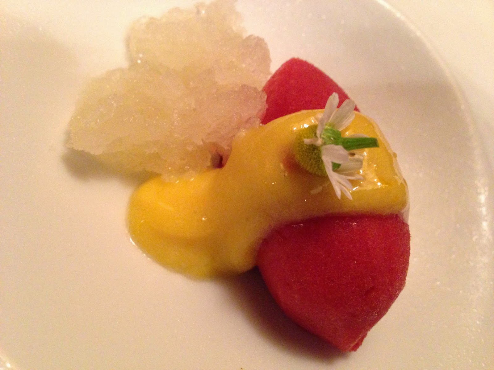 • Strawberry Gin Sorbet with Lemon Granite and Champagne Sabayon