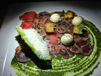 Baby Lamb Carpaccio with Caesar Salad Ice Cream