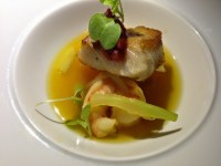 • Black Cod and Gulf Shrimp in an Orange-Saffron Broth with Tomato Jam