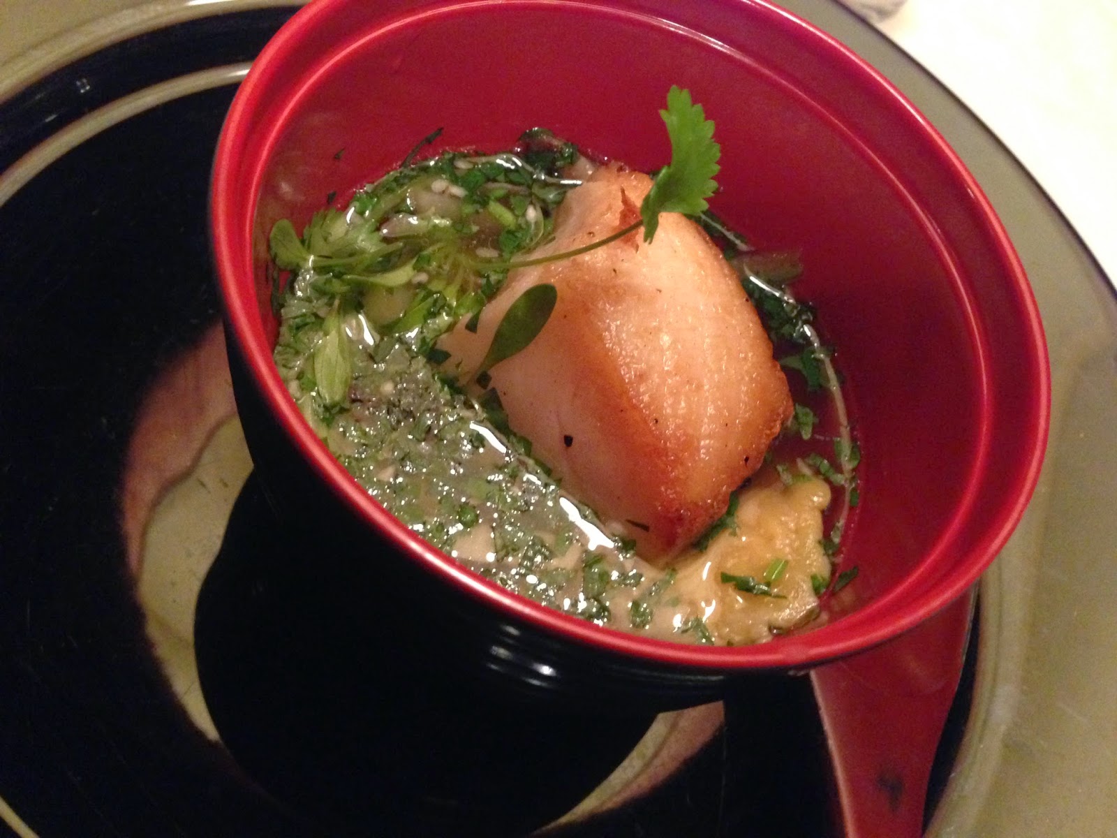 • Antarctic Sea Bass in an Dashi Broth Perfumed with Ginger ( my favorite dish)