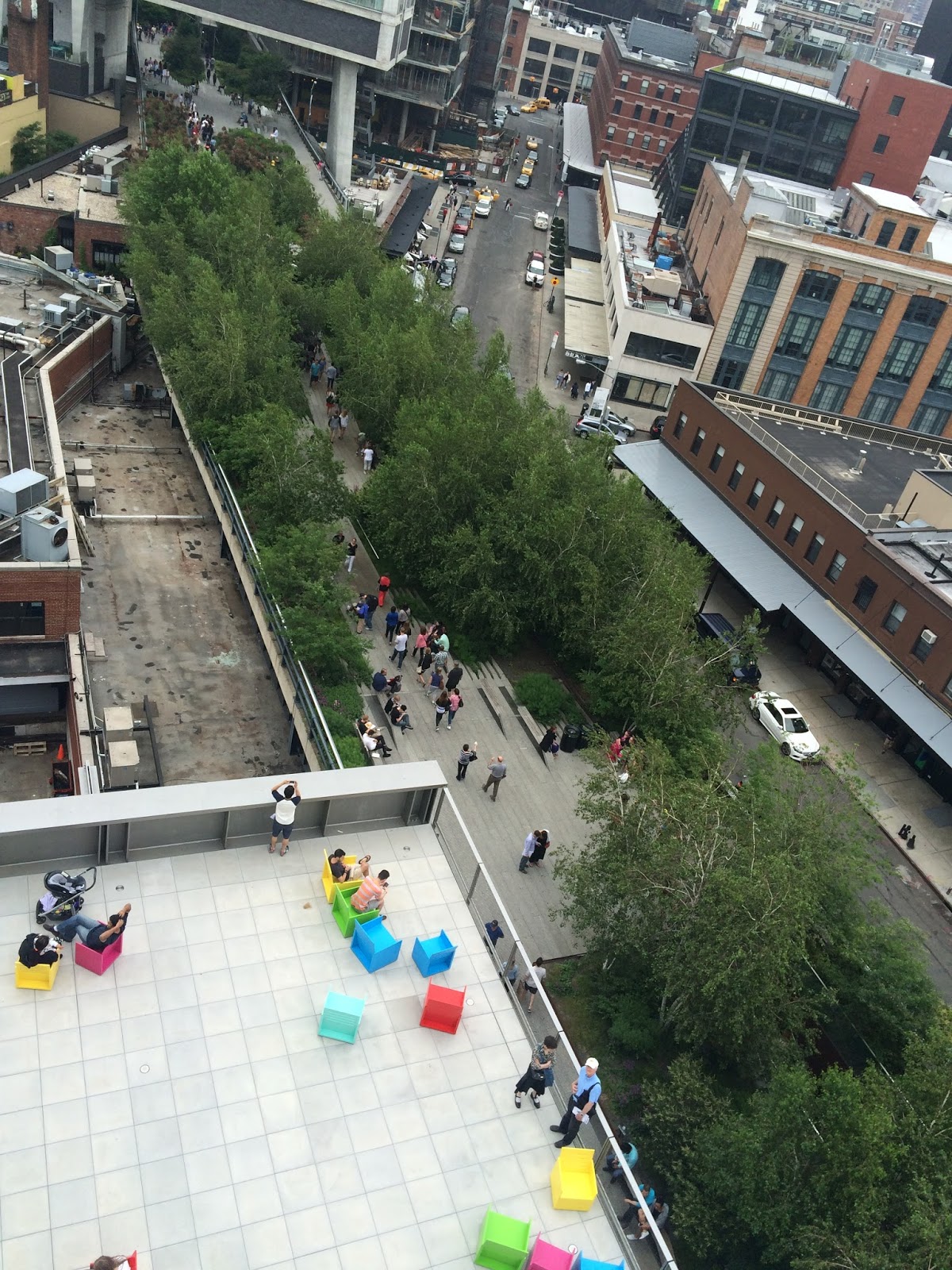 We perused through all the floors of art work, each devoted to different periods throughout the twentienth century.  I can’t say I understood or appreciated much of it, but we certainly found it entertaining.  Like the artist who had cut a square of old wallpaper and framed it to look nice, or another who had stuck a whole bunch of “VIA AIR MAIL” stickers on a canvas board.  I’m not sure how either is art but hey I subscribe more to the notion of “Art for art’s sake” than “Art is in the eye of the beholder”.  Maybe I just don’t get it.  Either way, we enjoyed the outdoor sculptures and making up stories about them, and taking photos from the outdoor areas on the upper floors which has some great vistas around NYC.