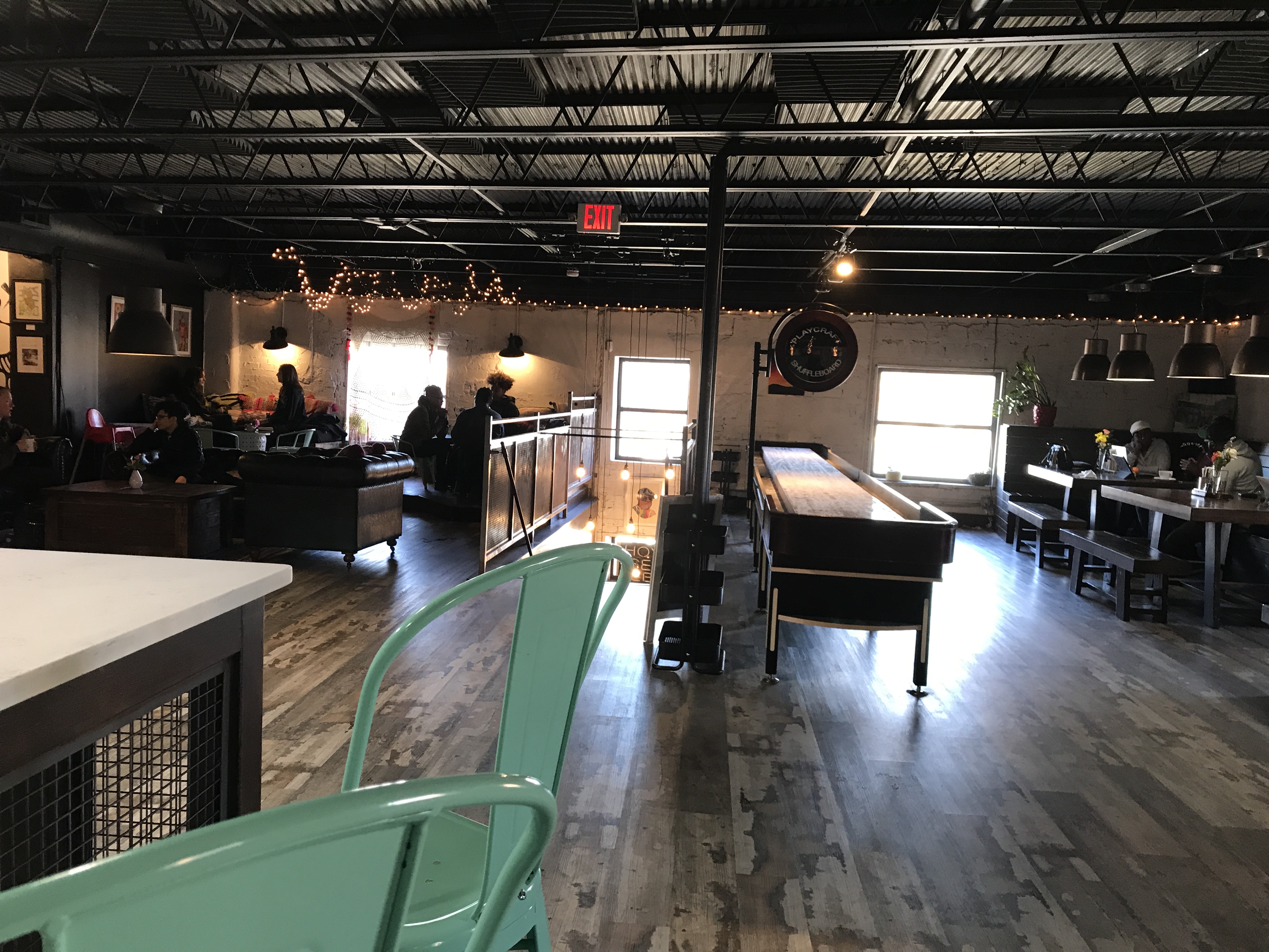 Trade & Lore – NoDa stands for North Davidson and is an up and coming district in Charlotte that is reminiscent of SoHo in New York City the way it used to be many years ago before the designer shops and galleries moved in. It has an artistic, eclectic feel along with some wonderful cafes and eateries. With many of the brunch restaurants not yet open, we decided to spend some time in this cafe which is an interesting concept – they rent space for part of the day in an establishment that turns into a bar after 5pm. My friends ordered cappuccinos and I ordered a turmeric & ginger tea. Both were made with such precision and care that it was evident in the taste. My friends declared it the best cappuccino they’ve had and I’m now on the hunt for this tea. The barista also offered us a taste of their cold tea and coffee that they serve from beer taps and are an option in the evenings when the bar is open. Both are non-alcoholic, have a bit of fizz and tasted delicious.